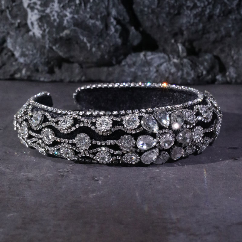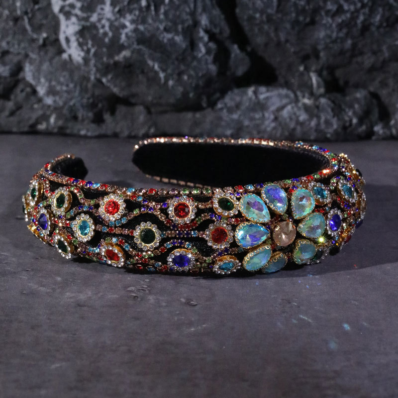 Claw inlaid colored glass diamond flower full diamond wide edge sponge head hoop
