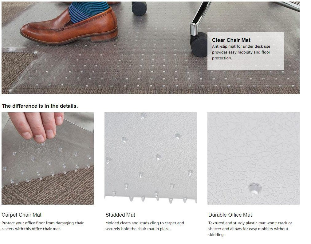 The textured wear resistant PVC chair mat allows your office chair to move easily without skidding.