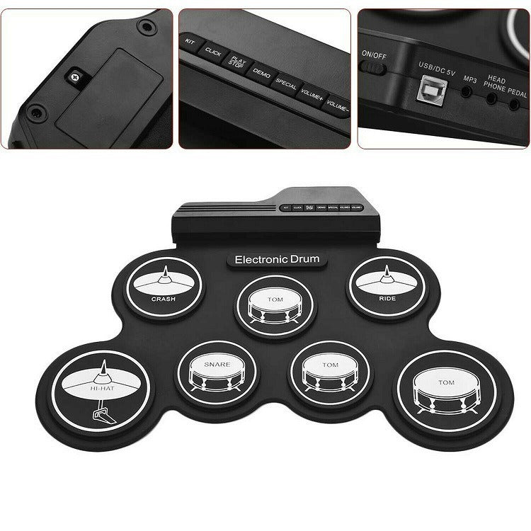 Handroll Electronic Drum Percussion Musical Instrument Portable Silicone Hand Roll Frame Drum Jazz Drum USB Electronic Drum