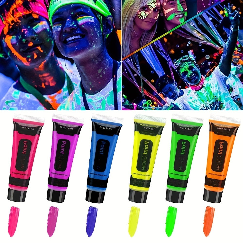 UV Glow Blacklight Face and Body Paint,0.48 oz, Set of 6 Tubes, 6 Colors Halloween Makeup